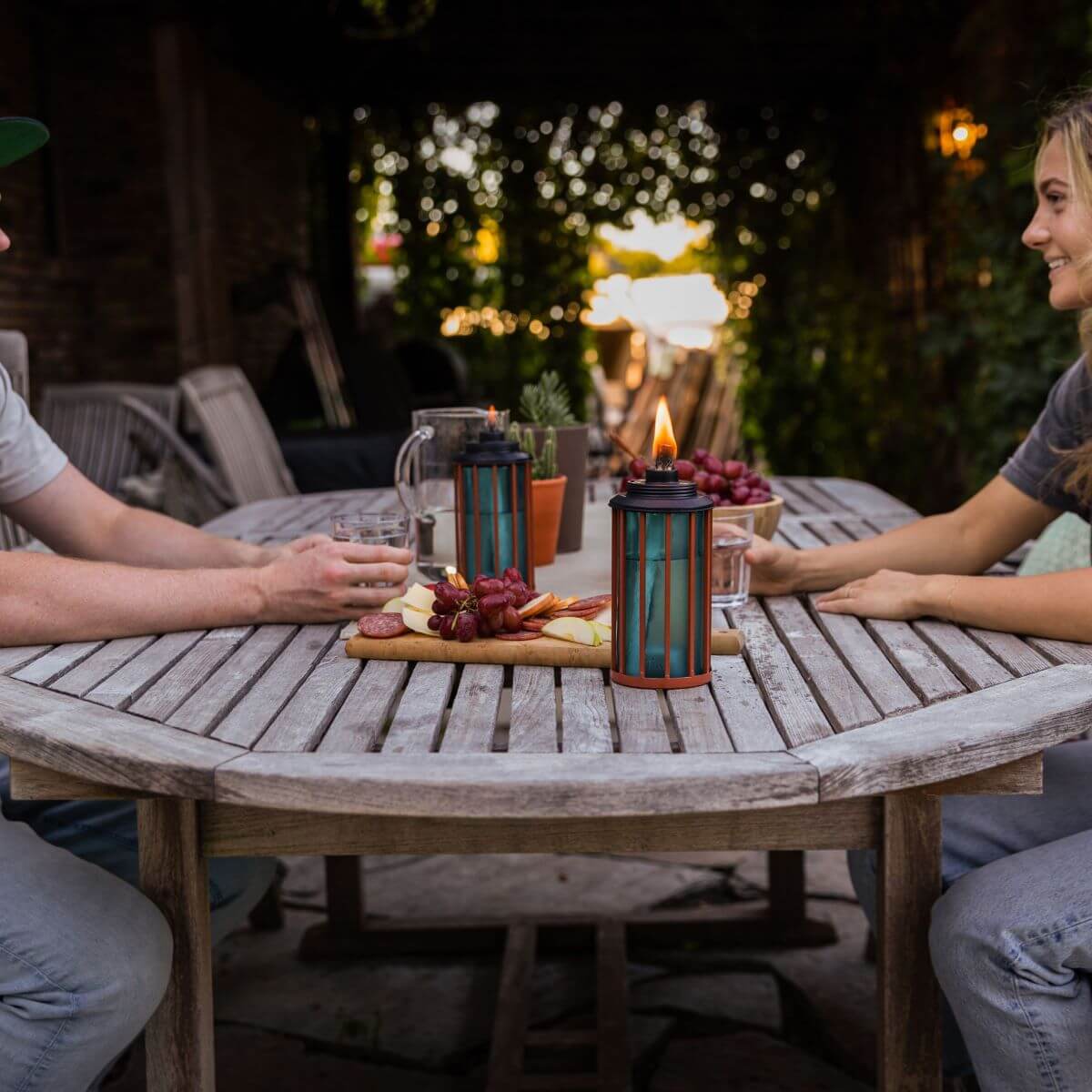 Easily add light to your yard, garden, or table, and enjoy natural flame ambiance in your backyard using TIKI® Brand Easy Install Retro Stripe Torches in Blue. The easy install lever provides a simple, one-step installation. These versatile torches transform from 65-inch full size torches to 50-inch mid-size garden torches. Remove the metal pole completely, and they become a centerpiece for your outdoor dining table or end tables. This two pack allows you to create a cohesive and attractive addition to any backyard space. For proven mosquito repellency*, use with TIKI® Brand BiteFighter® Torch Fuel, and enjoy up to 5 hours of burn time with each 12-ounce fill. TIKI® Brand BiteFighter® Torch Fuel sold separately. *Based on studies using CO2-emitting mosquito traps which demonstrated over 50% reduction in captured mosquitoes compared to untreated controls. Use as directed. Efficacy may be affected by weather conditions, torch placement, and individual physical factors.