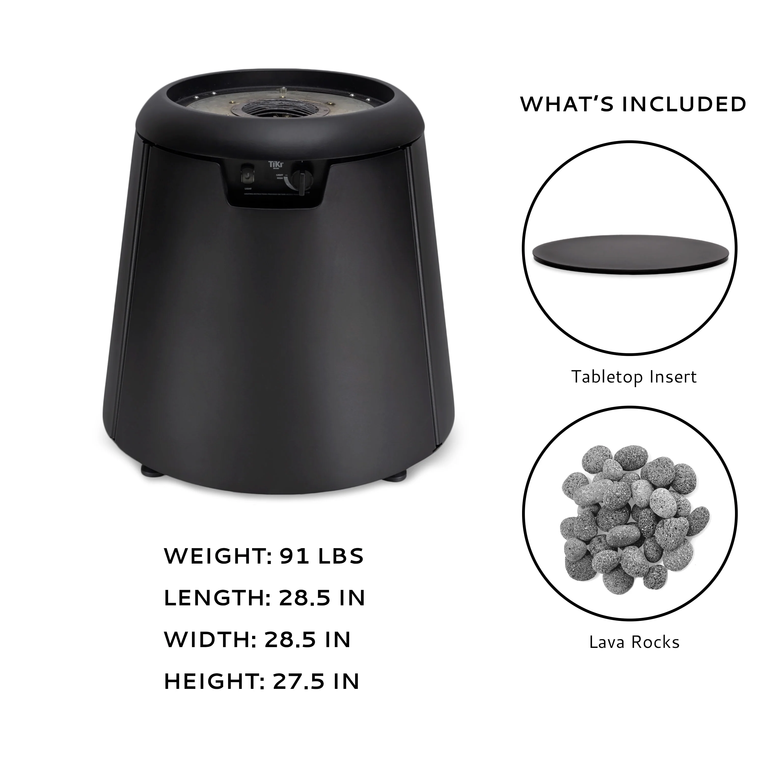 The TIKIĀ® Brand Customizable Propane Gas Fire Pit was designed to be a stylish upgrade to the backyard. The Propane Fire Pit's smokeless experience elevates the comfort and ambiance for any gathering, large or small; and its modular design lets you customize, with interlocking attachments. Take in the beautiful natural flame, connect the Patio Heater Attachment for extra warmth, or add the Table Attachment and simply enjoy dinner outside. Includes decorative lava rocks, metal burner cover, easy-to-read propane gauge, and slide-out propane tray. Built-in safety features and durable materials provide peace-of-mind so you can enjoy and create long-lasting memories with the whole family. We provide a hassle-free experience with free delivery right to your door, a simple assembly, and a 2-year limited warranty.