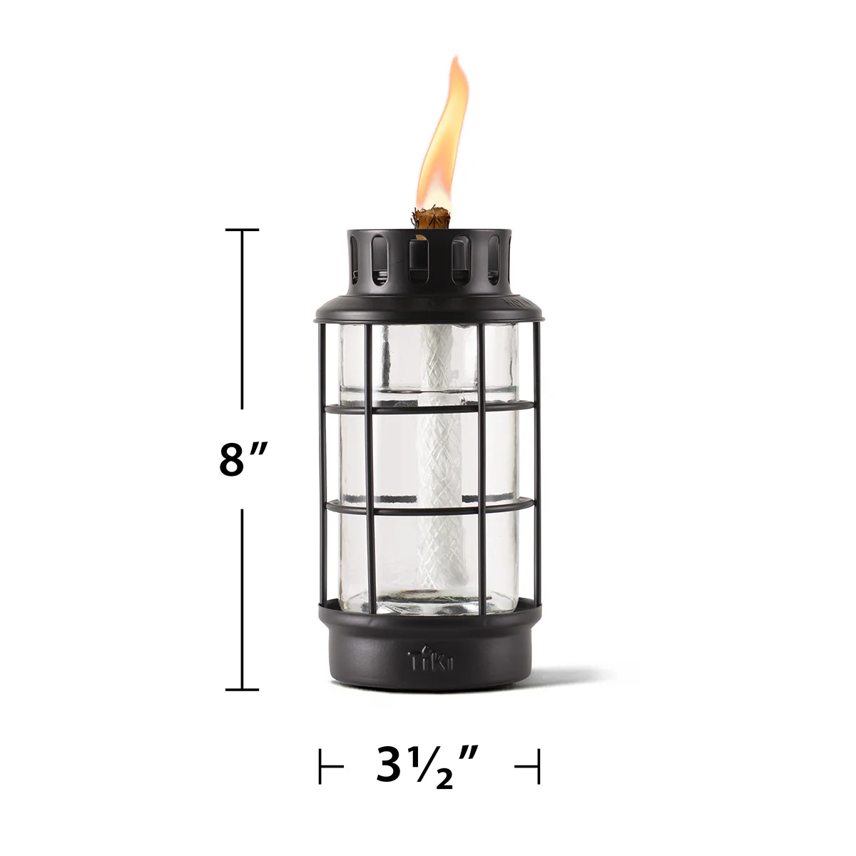Easily add light to your yard, garden or table and enjoy natural flame ambiance in your backyard with the TIKI® Brand Easy Install TIKI Torch Metal Lantern in Black. The easy install lever provides a simple, one-step installation. This versatile torch is easy to put in and transforms from a 65-inch full-size torch to a 50-inch mid-size garden torch. Remove the metal pole completely, and it becomes a centerpiece for your outdoor dining table or end table. The glass vessel features a wide mouth for fewer spills and less mess when refilling. The TIKI® Brand Easy Install TIKI Torch Metal Lantern comes complete with glass vessel lantern design with flameguard, 4-piece pole with easy install lever, long-lasting wick and a metal snuffer to safely extinguish the flame. For proven mosquito repellency*, use with TIKI® Brand BiteFighter® Torch Fuel, and enjoy up to 5 hours of burn time with each 12-ounce fill. TIKI® Brand BiteFighter® Torch Fuel sold separately. *Based on studies using CO2-emitting mosquito traps which demonstrated over 50% reduction in captured mosquitoes compared to untreated controls. Use as directed. Efficacy may be affected by weather conditions, torch placement, and individual physical factors.